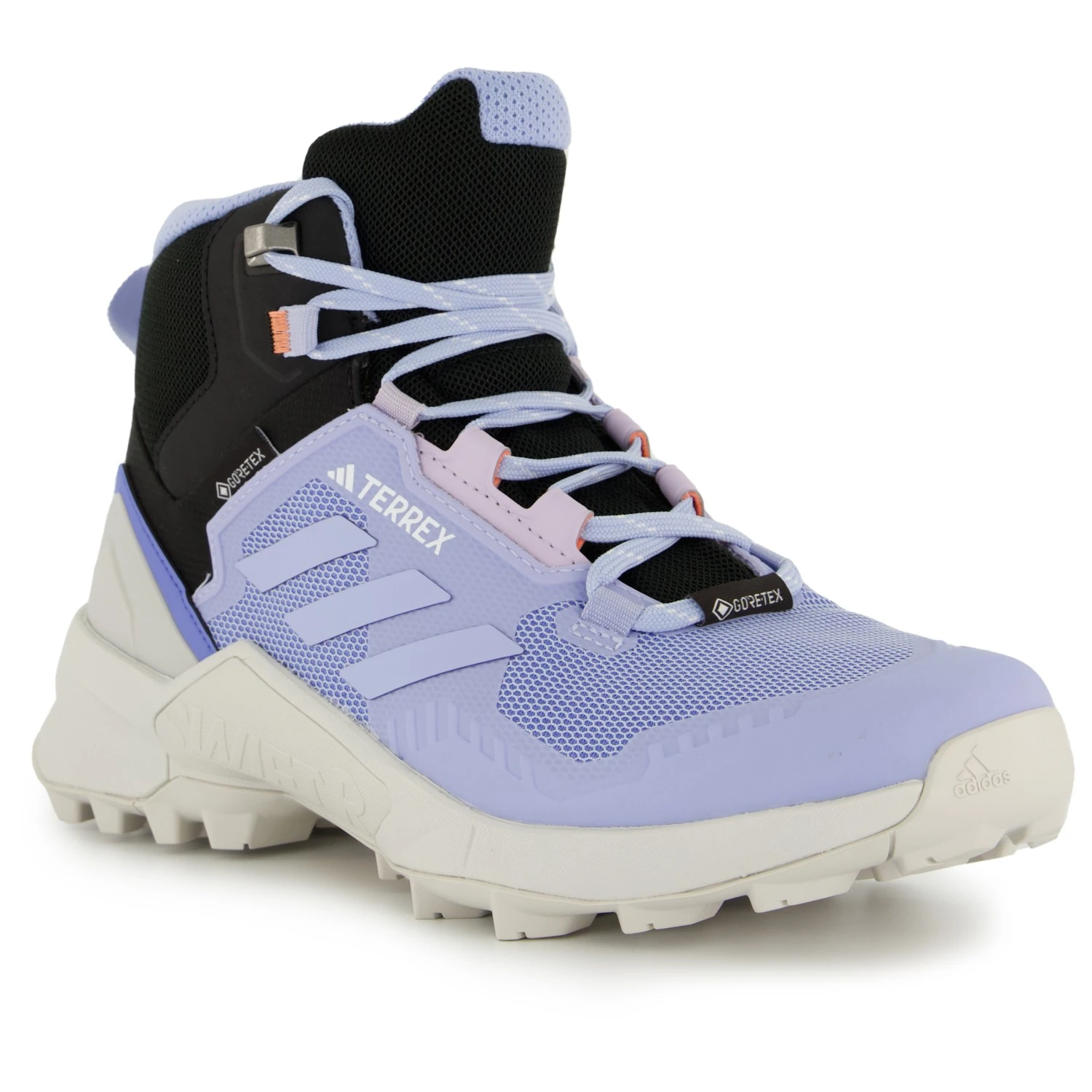 The Women’s Terrex Swift R3 Mid GTX from adidas Terrex are durable, protective high-cut men’s walking boots. They are suitable for long hikes and multi-day tours with a medium-heavy luggage. Equipped with a firm sole with coarse lugs and stone protection plate, your feet will be protected against protruding, sharp stones and loose scree. Plus, they feature a soft EVA foam midsole and moulded insole to cushion your every step.