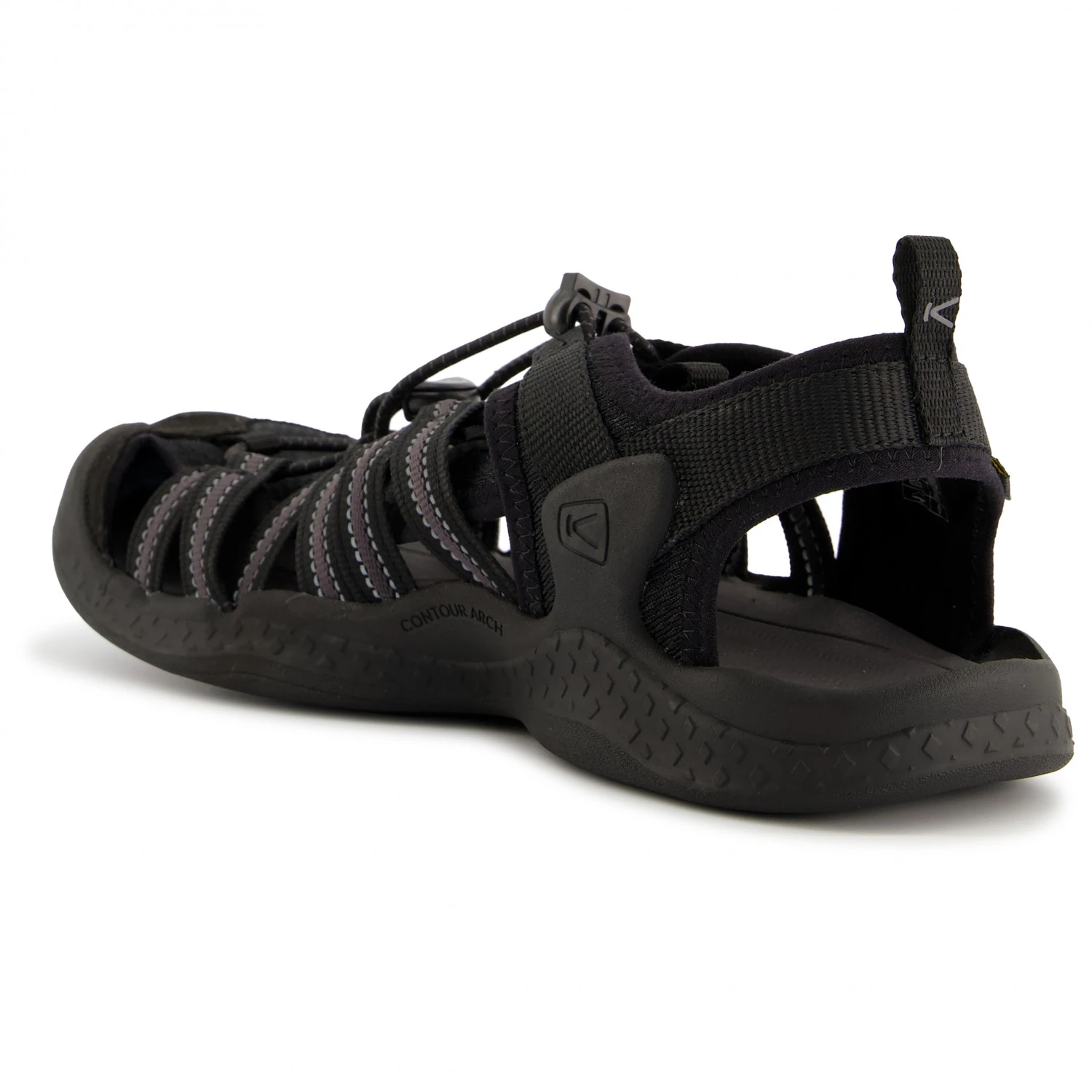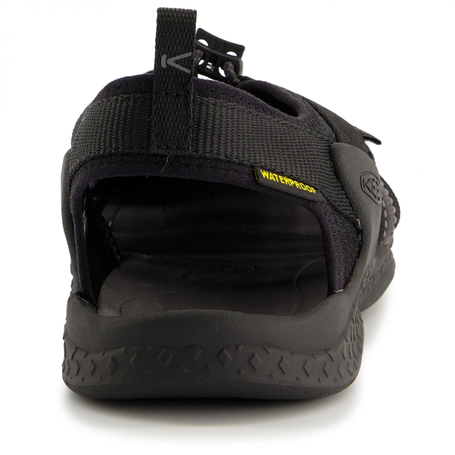 The Drift Creek H2 from Keen easily withstand contact with water. These hiking sandals feature an easy to care for polyester upper that dries in no time. In addition, the comfortable lining dries just as quickly and ensures a quality foot climate with its odour-inhibiting properties. The practical drawstring makes it child’s play to put on and take off the sandals and ensures that they fit snugly at all times.
