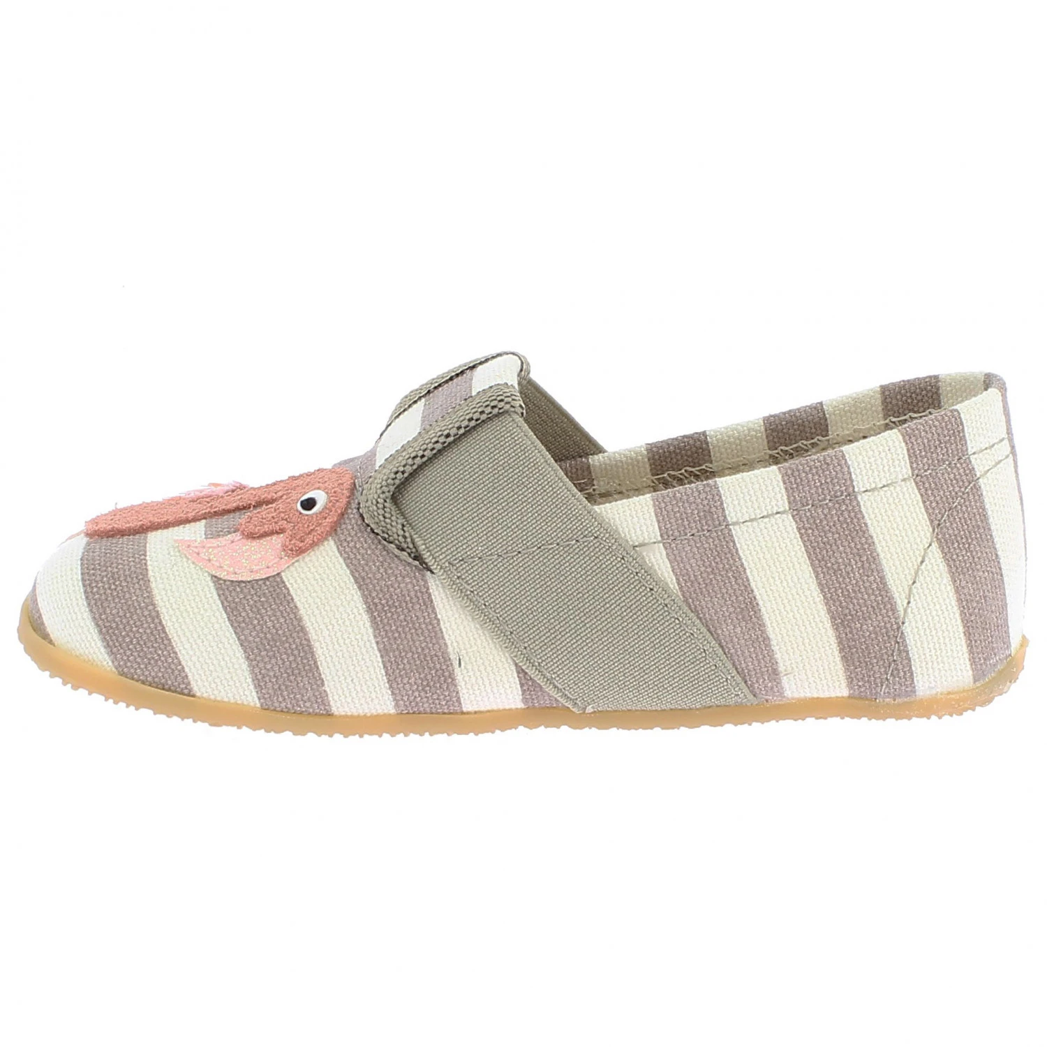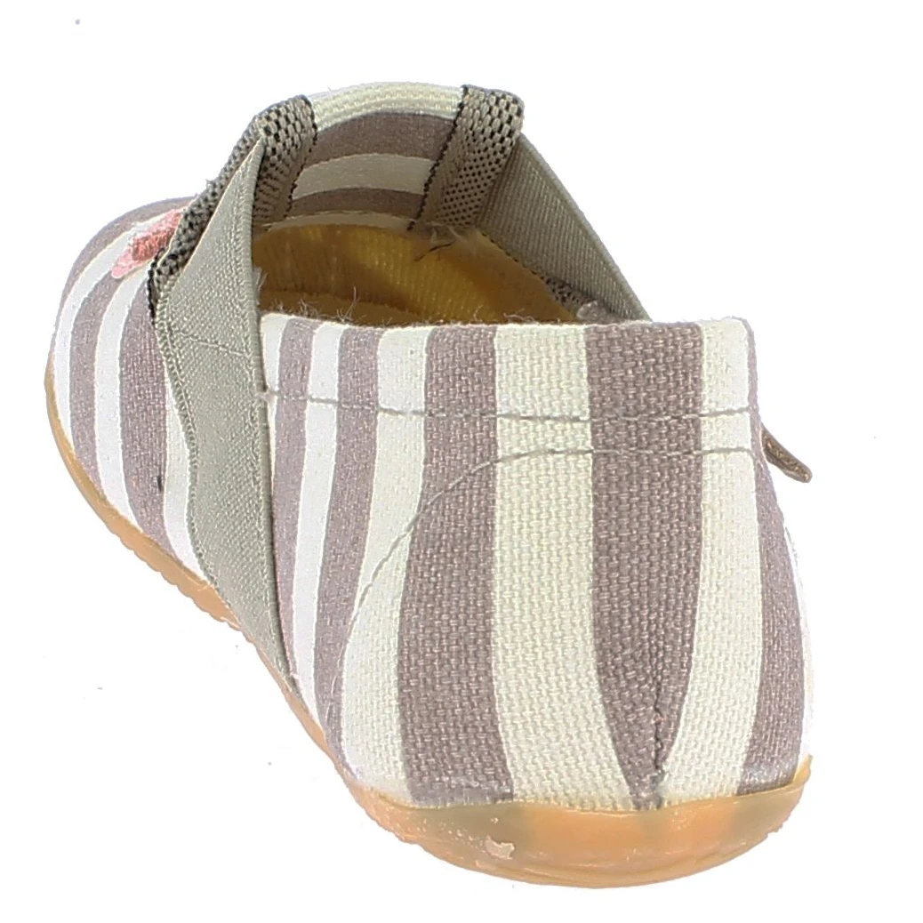 They provide support and are easy to put on, even for small children, thanks to the elastic rubber band. The slip-resistant, abrasion-resistant and flexible natural rubber sole provides good traction whilst walking, and offer an almost barefoot-like feeling. The cotton upper is breathable and soft, and the flamingo and palm tree motif offer a nice look.
