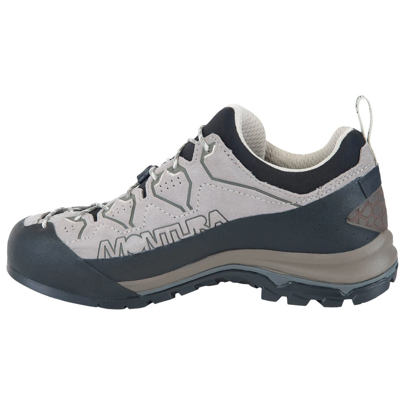 The Women’s Yaru GTX by Montura offers the perfect combination of stability, weather protection and optimum comfort! The classic approach shoes have a special, breathable tongue construction so they feel just like wearing socks. The relatively firm lasts provide precisely the support that your feet need on difficult, rocky terrain, while the Vibram Megagrip soles provide excellent grip on any surface. Their climbing zone allows you to climb through straightforward climbing trails. The Women’s Yaru GTX also has a proven GORE-TEX membrane to make the shoes completely waterproof. Sweat can also escape to the outside to keep feet comfortable at all times. The leather outer is naturally breathable, as well as durable and flexible. The rubber rock guard also contributes to the robust nature of the shoes. The laces also have a practical intermediate attachment in the middle to prevent them from slackening off and to keep them at the right tightness without having to relace them. The Montura Women’s Yaru GTX are the perfect shoes on your way to the rock or for gentle hikes!